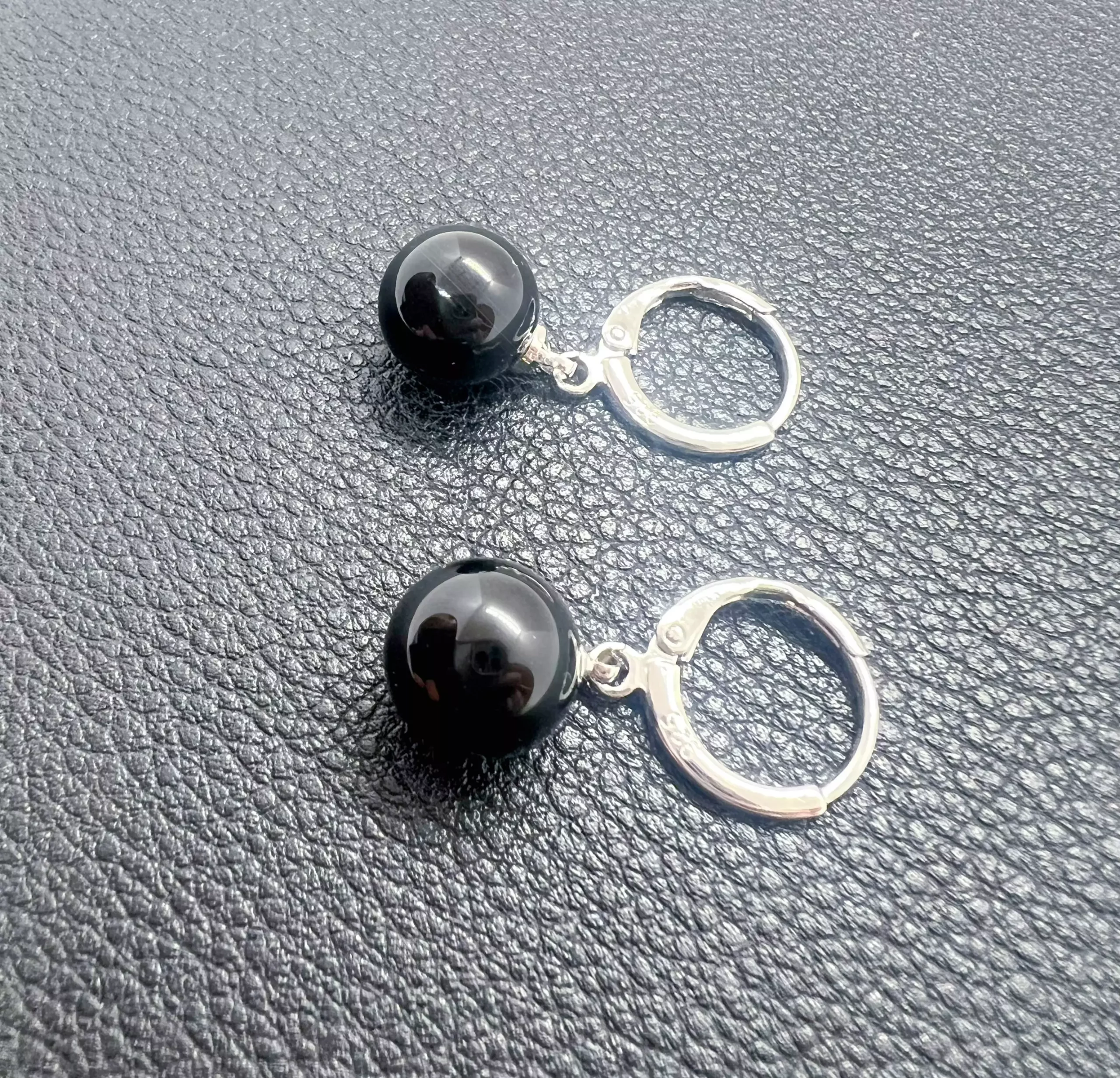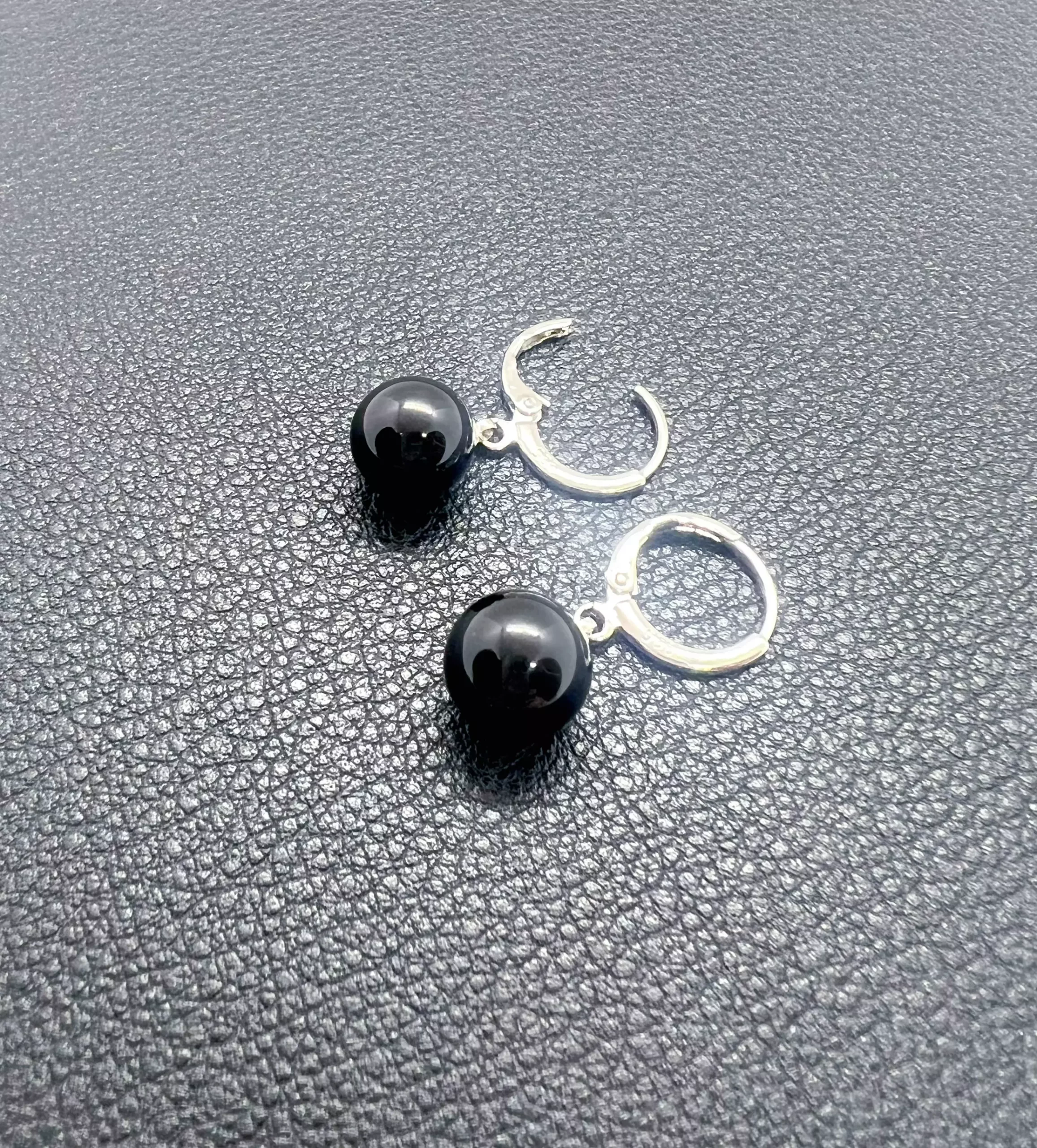 Ces boucles dégagent une présence calme mais magnétique. Les créoles en argent S925, sobres et lumineuses, servent d’écrin à une agate noire parfaitement sphérique de 14 mm, dont la profondeur évoque l’encre d’une nuit dense et silencieuse.