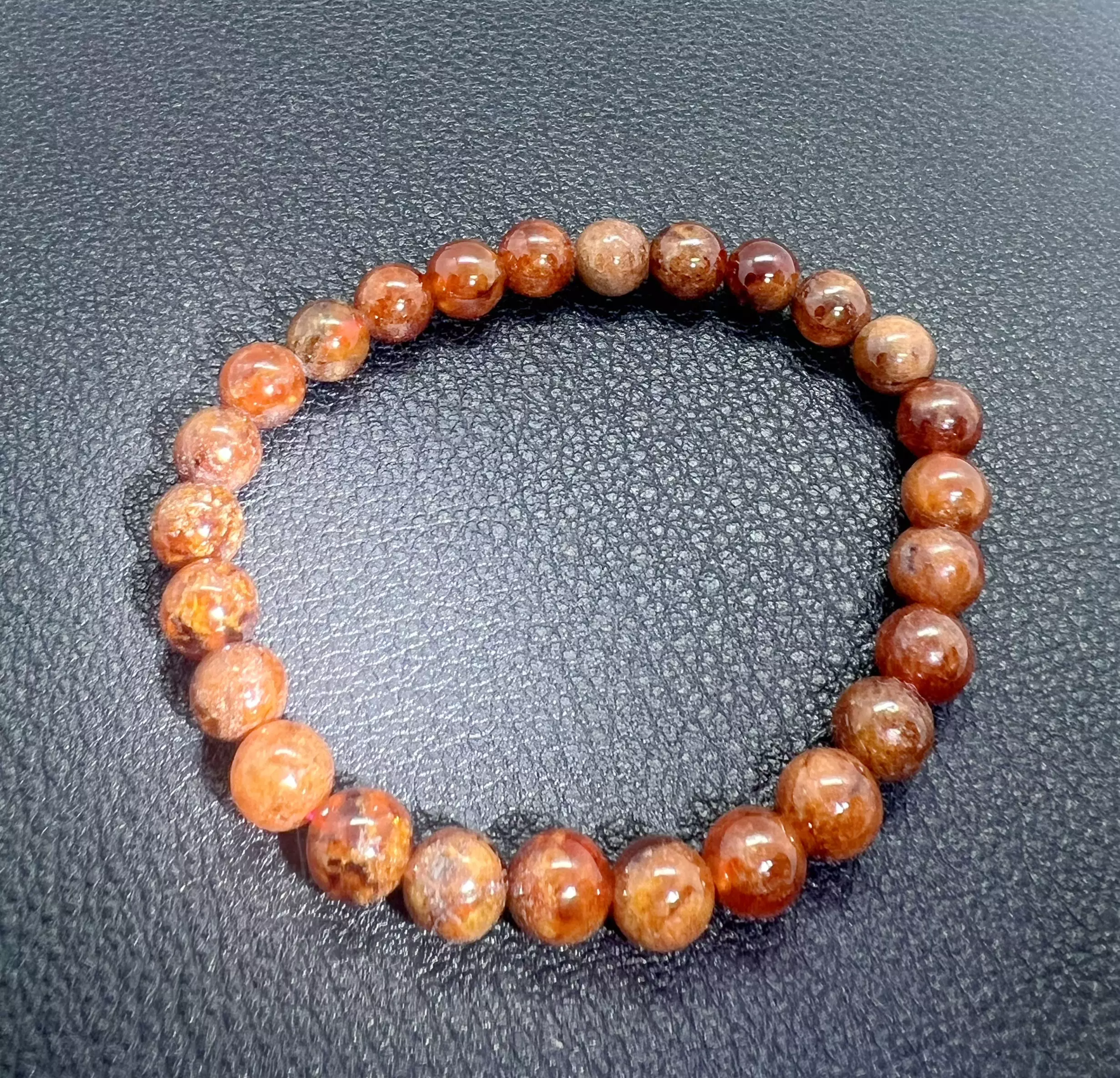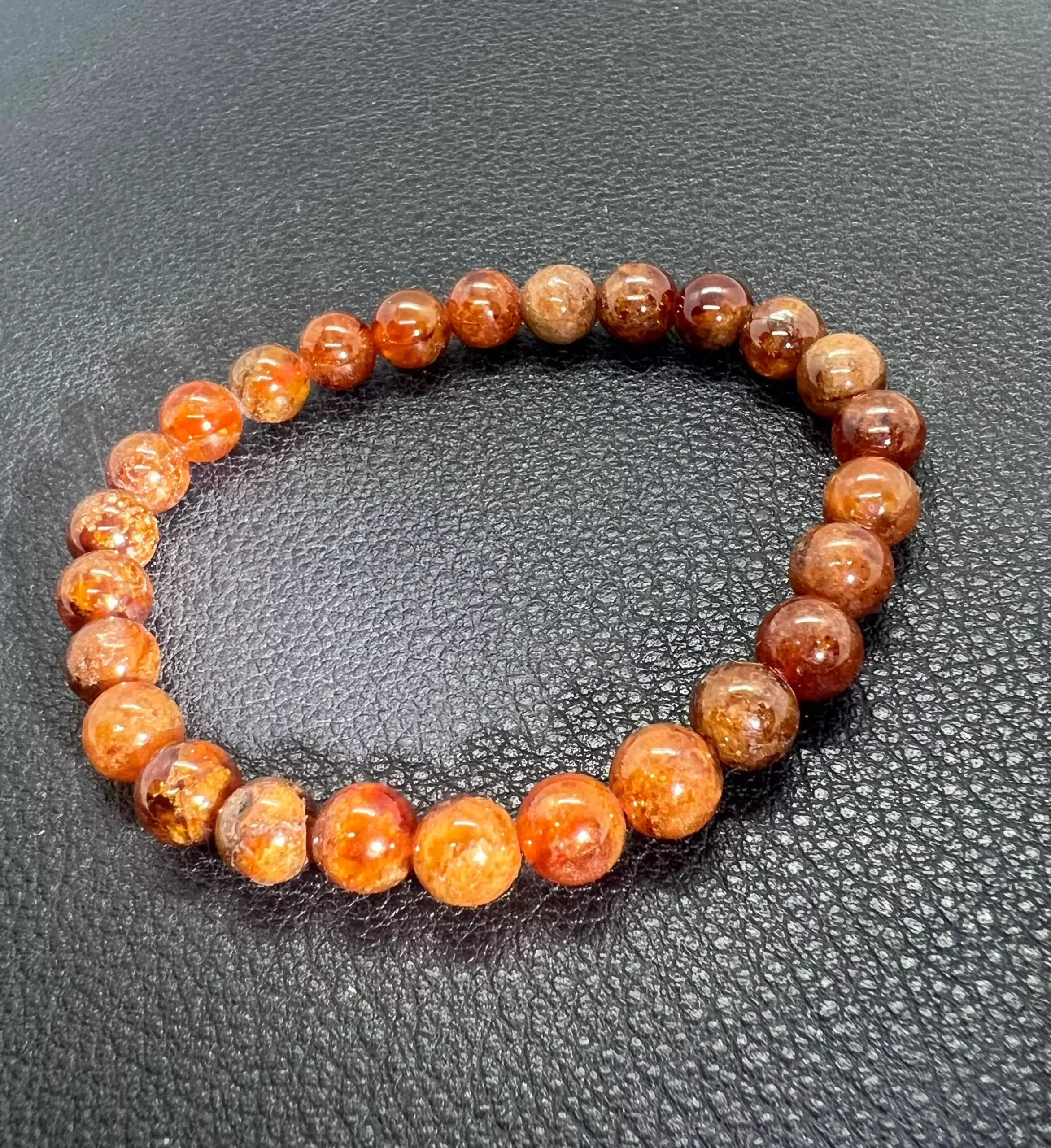 Bracelet en grenat spessartite orange 7–8 mm – éclats de caramel